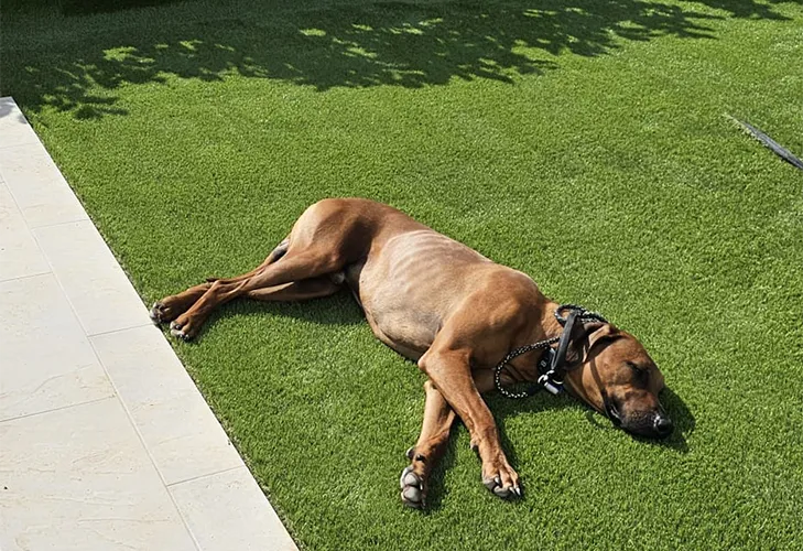 Una de las innovaciones más importantes en este sentido es la inclusión de una capa protectora especial que repele líquidos, lo que juega un papel crucial en la prevención de la absorción de manchas y olores en las fibras. Esta característica hace del césped artificial una opción ideal para propietarios de mascotas, ya que facilita la limpieza y mantenimiento, al tiempo que garantiza un espacio higiénico y libre de olores desagradables.